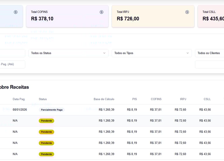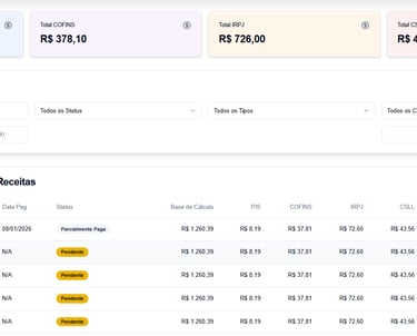 Nosso sistema faz os cálculos automaticamente a cada lançamento. Você acompanha o valor dos impostos em tempo real, seja por parcela individual ou no fechamento mensal, sem precisar de planilhas ou retrabalhos.