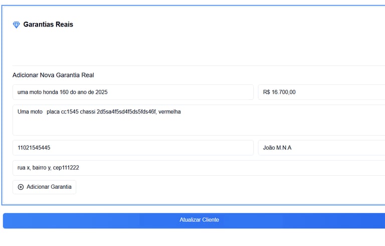 Tenha uma página dedicada ao gerenciamento das garantias pessoais e reais, onde você pode organizar e acompanhar todas as suas informações essenciais. Isso não só facilita o processo de gerenciamento, mas também assegura que você tenha tudo à mão, caso precise acessar suas garantias em algum momento futuro. Manter um registro atualizado é crucial para garantir que seus direitos e proteções sejam sempre respeitados.