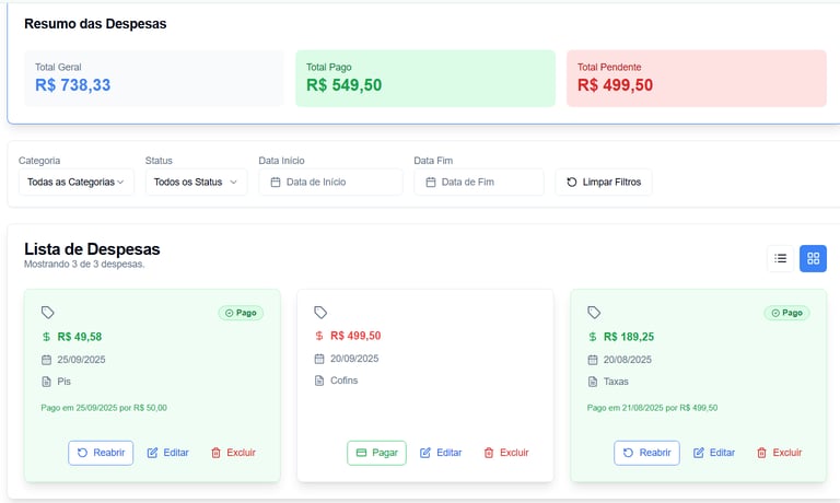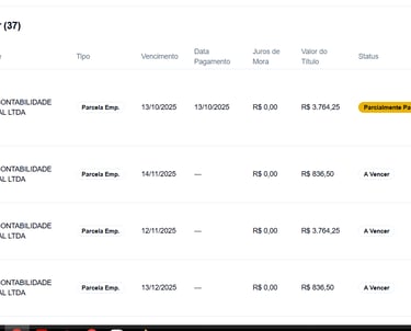 Mantenha o controle das suas contas a pagar. Visualize rapidamente as parcelas que estão atrasadas, as que estão por vencer e as já quitadas. Evite penalidades por atrasos nos pagamentos.